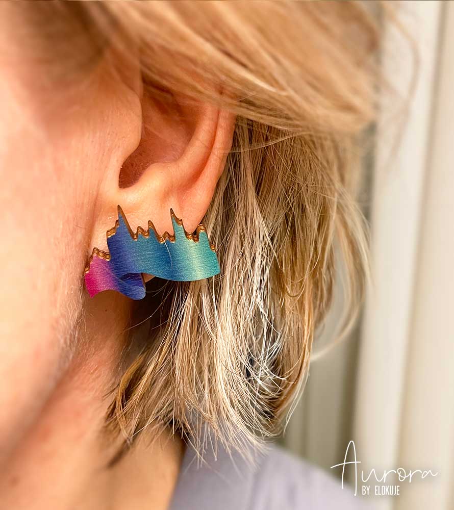 Kotimaiset koivuvaneriset revontuli-nappikorvakorut | Aurora by Elokuje