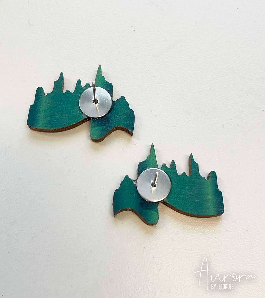 Kotimaiset koivuvaneriset revontuli-nappikorvakorut | Aurora by Elokuje **2-laatu**